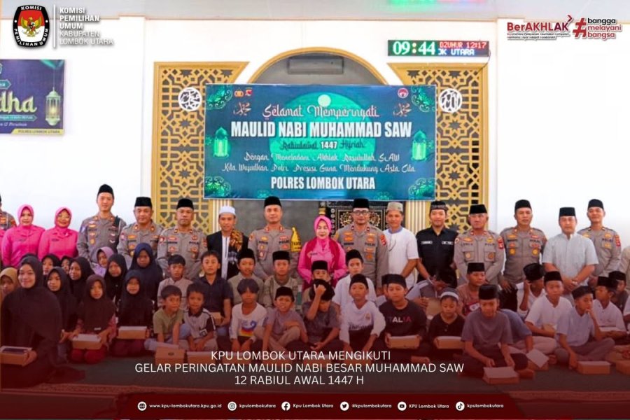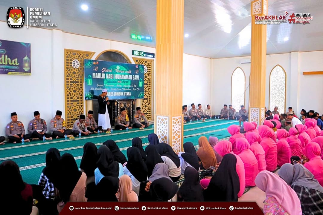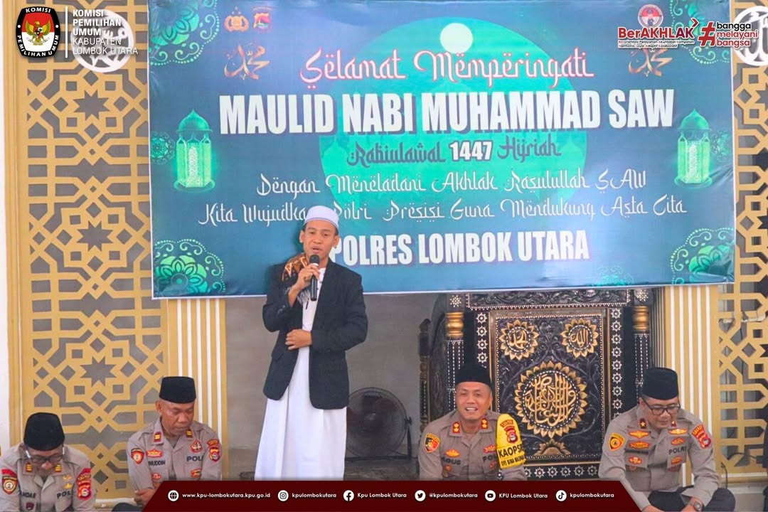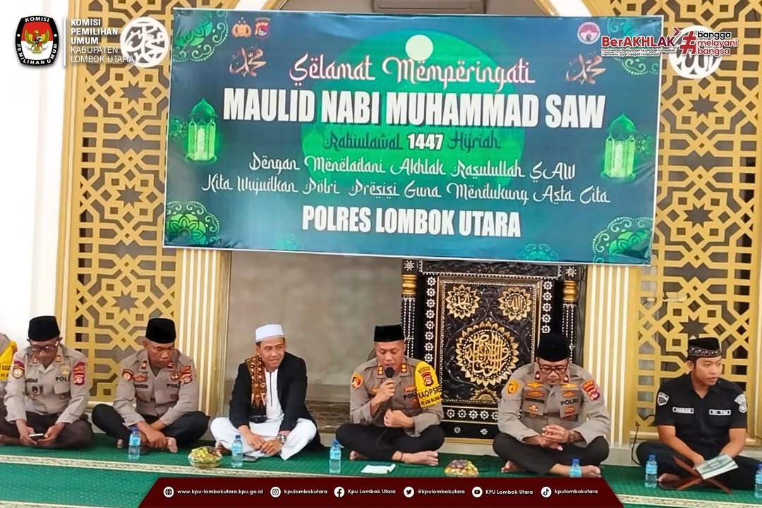 Gangga (kpu-lombokutarakab.go.id)-Ketua Komisi Pemilihan Umum (KPU) Kabupaten Lombok Utara menghadiri Gelar Peringatan Maulid Nabi Besar Muhammad SAW 12 Rabiul Awal 1447 H yang berlangsung di Masjid Bhayangkara Polres Lombok Utara, Jumat pagi (05/09/2025).