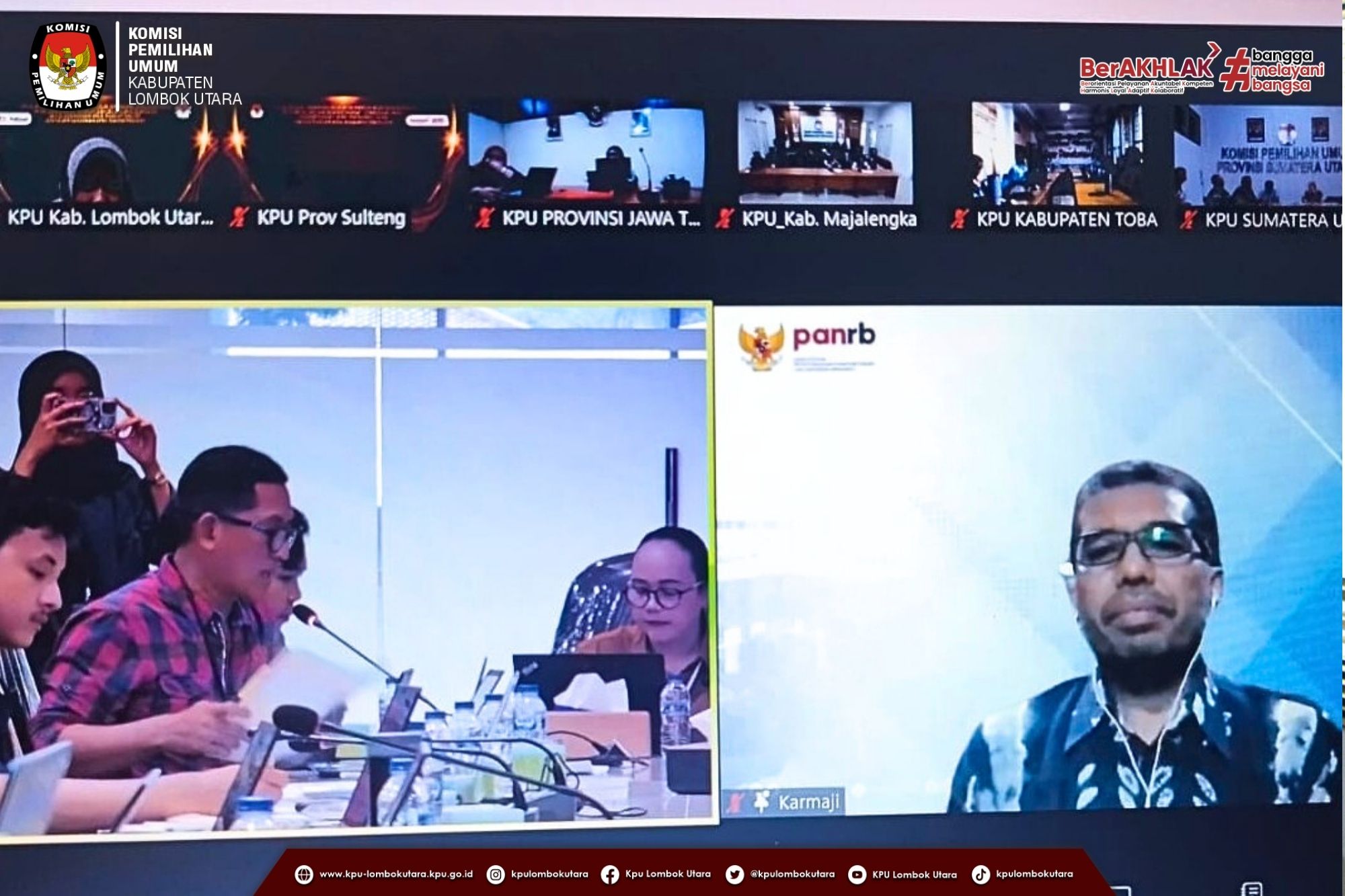 Gangga (kpu-lombokutarakab.go.id)-Komisi Pemilihan Umum Kabupaten Lombok Utara mengikuti kegiatan Knowledge Sharing Budaya Kerja ASN dengan Tema "Nilai Dasar ASN BerAKHLAK dan Strategi Penguatan Budaya Kerja di Instansi Pemerintah" di Laksanakan oleh Sekretariat Jenderal KPU dan diikuti oleh Sekretariat KPU Provinsi, dan Sekretariat KPU Kabupaten/Kota secara Daring melalui zoom meeting Kamis, 25/09/2025.