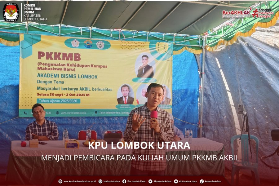 Pada kesempatan ini hadir Ketua KPU Kabupaten Lombok Utara, Nizamudin di tengah-tengah mahasiswa baru AKBIL Lombok Utara dalam rangkaian kegiatan PKKMB 2025 yang betema "Masyarakat Berkarya AKBIL Berkualitas."
