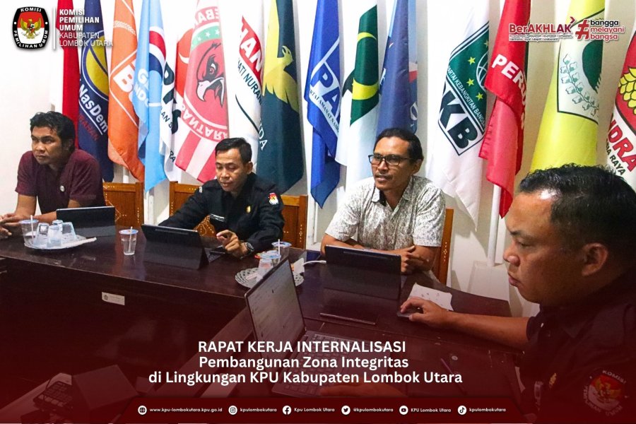 Gangga (kpu-lombokutarakab.go.id)-Komisi Pemilihan Umum Kabupaten Lombok Utara menggelar Rapat Kerja Internalisasi Pembangunan Zona Integritas dihadiri oleh seluruh pimpinan, kepala subbagian, dan staf pelaksana bertempat di Ruang Rapat Kantor KPU Lombok Utara, Rabu (08/10/2025).