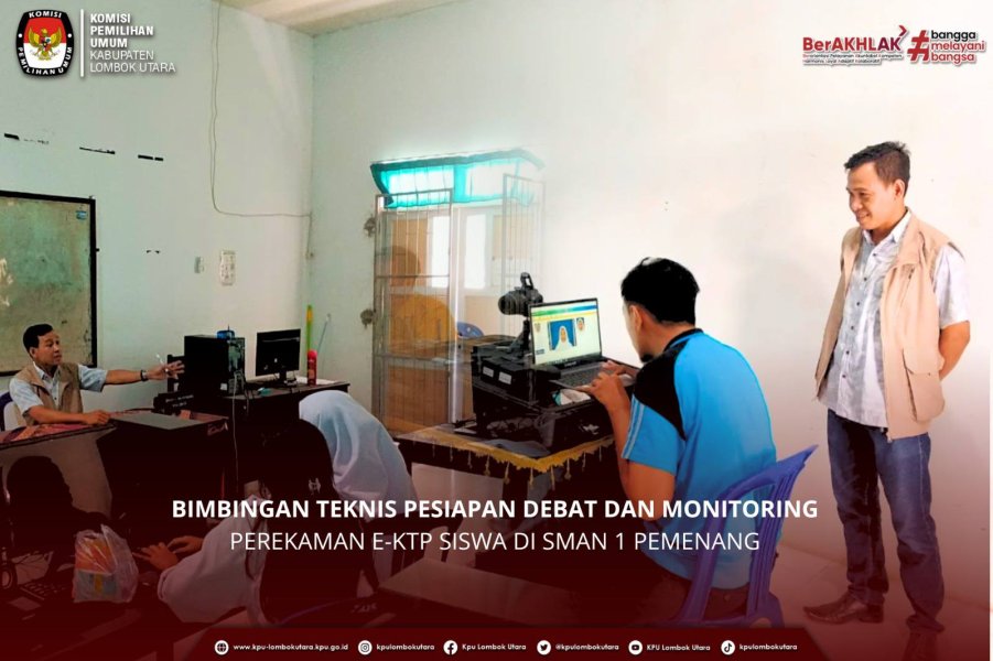 Selain perekaman E-KTP, tim KPU Lombok Utara juga memberikan Bimbingan Teknis (Bimtek) pelaksanaan debat kepada panitia pelaksana Pemilos SMAN 1 Pemenang.