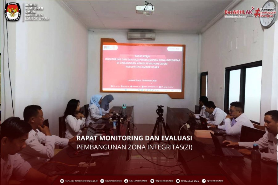 Gangga (kpu-lombokutarakab.go.id)-Komisi Pemilihan Umum Kabupaten Lombok Utara menggelar Rapat Kerja Monitoring dan Evaluasi Pembangunan Zona Integritas dihadiri oleh pimpinan, kepala subbagian, dan staf pelaksana bertempat di Ruang Rapat Kantor KPU Lombok Utara, Rabu (13/10/2025).