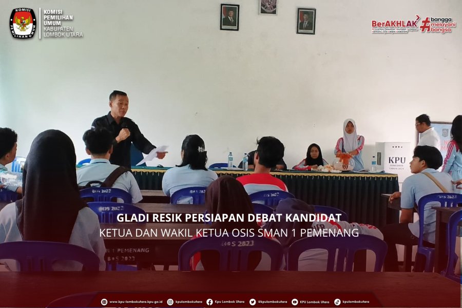 Gangga (kpu-lombokutarakab.go.id) -Komisi Pemilihan Umum (KPU) Kabupaten Lombok Utara (KLU) memfasilitasi kegiatan gladi resik persiapan debat kandidat Ketua dan Wakil Ketua OSIS SMAN 1 Pemenang. bertempat di aula sekolah SMAN 1 Pemenang dan dihadiri oleh para pengurus OSIS yang akan bertindak sebagai panitia dan moderator debat, Rabu (15/10/2025).