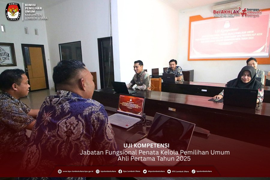 Gangga (kpu-lombokutarakab.go.id)-Dalam rangka meningkatkan profesionalisme dan kapasitas sumber daya manusia (SDM), empat orang pegawai dari Komisi Pemilihan Umum (KPU) Kabupaten Lombok Utara telah mengikuti Uji Kompetensi Jabatan Fungsional Penata Kelola Pemilihan Umum Ahli Pertama Tahun 2025.