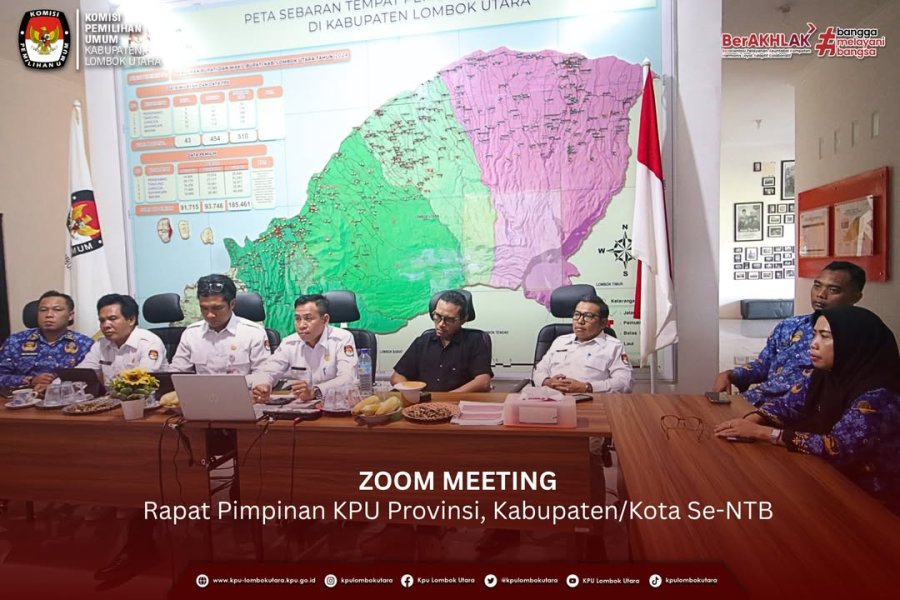 Gangga (kpu-lombokutarakab.go.id)-Komisi Pemilihan Umum Kabupaten Lombok Utara mengikuti Rapat Pimpinan (Rapim) yang diselenggarakan oleh KPU Provinsi Nusa Tenggara Barat (NTB) bersama seluruh KPU Kabupaten/Kota se-NTB secara daring melalui Zoom Meeting. Senin (17/11/25).