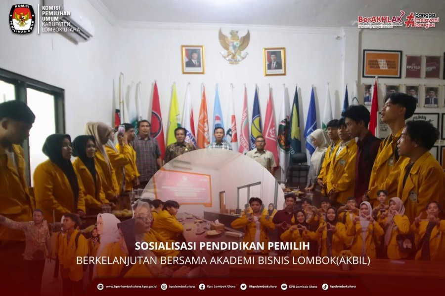 Diterima oleh Ketua dan Anggota beserta jajaran Sekretariat KPU Lombok Utara. Dalam sambutannya, Ketua KPU Lombok Utara Nizamudin menyoroti relevansi program studi AKBIL yang fokus pada penggabungan bisnis dan teknologi digital dan menekankan bahwa penyelenggaraan Pemilu modern sangat membutuhkan aplikasi teknologi informasi dan prinsip manajemen yang efisien, sejalan dengan kurikulum AKBIL.