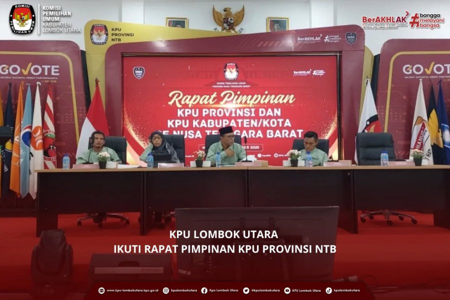 Gangga (kpu-lombokutarakab.go.id)-Komisi Pemilihan Umum (KPU) Kabupaten Lombok Utara menghadiri Rapat Pimpinan (Rapim) yang diselenggarakan KPU Provinsi NTB bersama seluruh KPU Kabupaten/Kota Se-NTB . Acara ini dirangkaikan dengan Peluncuran Program Go vote KPU NTB, Acara dihadiri oleh Komisioner dan Plt.Sekretaris KPU Lombok Utara bertempat di Ruang Rapat KPU Provinsi NTB pada Minggu(14/12/2025).