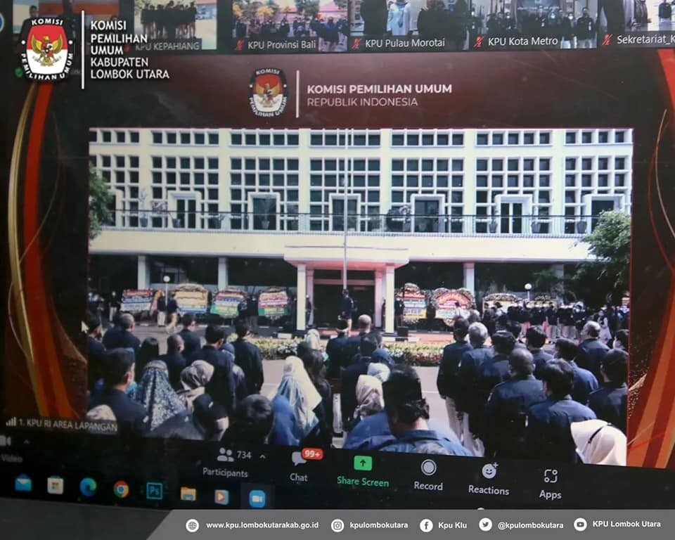 Apel secara luring dan daring di masing-masing Kantor Sekretariat KPU Provinsi/Kabupaten/Kota yang diikuti oleh Pejabat Struktural, Fungsional dan Staf Sekretariat KPU Provinsi dan Kabupaten/Kota Se-Indonesia ini di Pimpin langsung oleh Sekretaris Jendral KPU Republik Indonesia Bernad Dermawan Sutrisno.