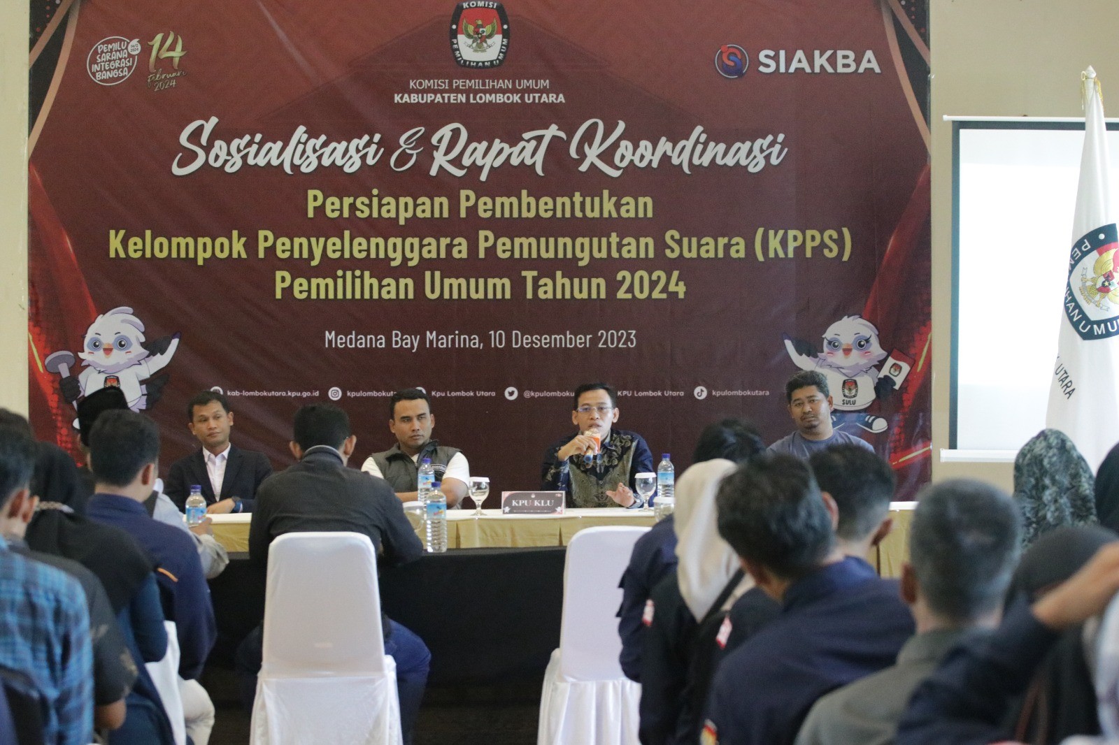 Gangga (kab-lombokutara.kpu.go.id)-Komisi Pemilihan Umum (KPU) Kabupaten Lombok Utara (KLU) Menggelar Kegiatan Sosialisasi dan Rapat Koordinasi Persiapan Pembentukan Kelompok Penyelenggara Pemungutan Suara (KPPS) Pemilu 2024 bertempat di Medana Bay Marina Kecamatan Tanjung Lombok Utara. Minggu (10/12).