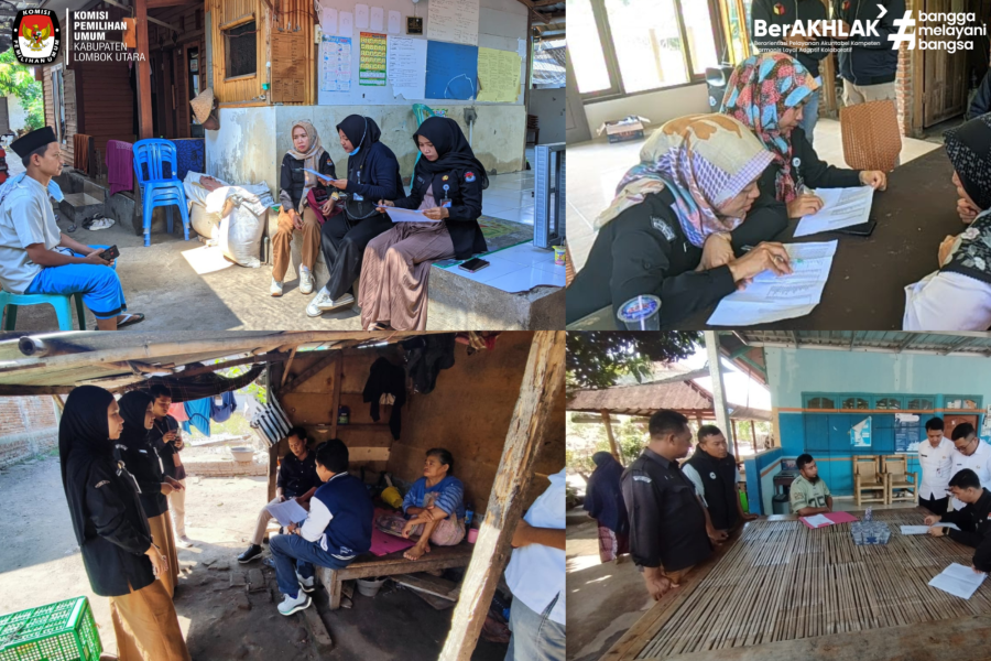 Tim KPU Lombok Utara bersama Bawaslu Lombok Utara dalam melaksanakan Verifikasi lapangan berkoordinasi dengan perangkat Desa serta mendatangi langsung pemilih untuk memastikan keakuratan dan kebenaran data, pencocokan dan penelitian terbatas dilakukan sebagai upaya agar data pemilih lebih akurat,
