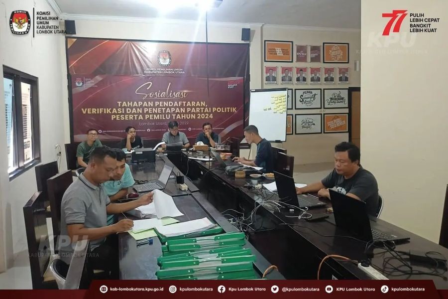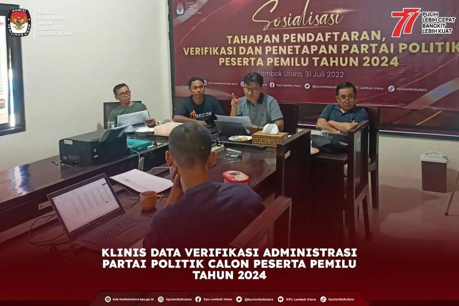 Acara ini dipimpin langsung oleh Juraidin, SH., MH Ketua KPU Kabupaten Lombok Utara yang bertujuan untuk memastikan hasil Verifikasi Administrasi yang dilakukan KPU Kabupaten/Kota sejak tanggal 16 Agustus 2022.