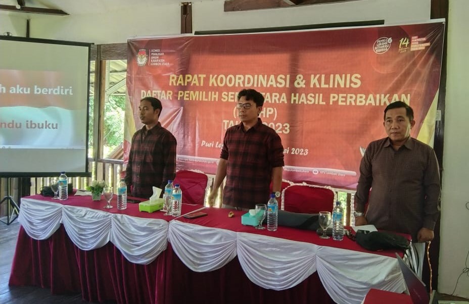 Gangga (kab-lombokutara.kpu.go.id) - Komisi Pemilihan Umum Kabupaten (KPU) Kabupaten Lombok Utara (KLU) Menggelar Rapat Koordinasi Dan Klinis Daftar Pemilih Sementara Hasil Perbaikan (DPSHP) Tahun 2023 pada Pemilu serentak tahun 2024 bertempat di Puri Lestari Tanjung. (06/05).