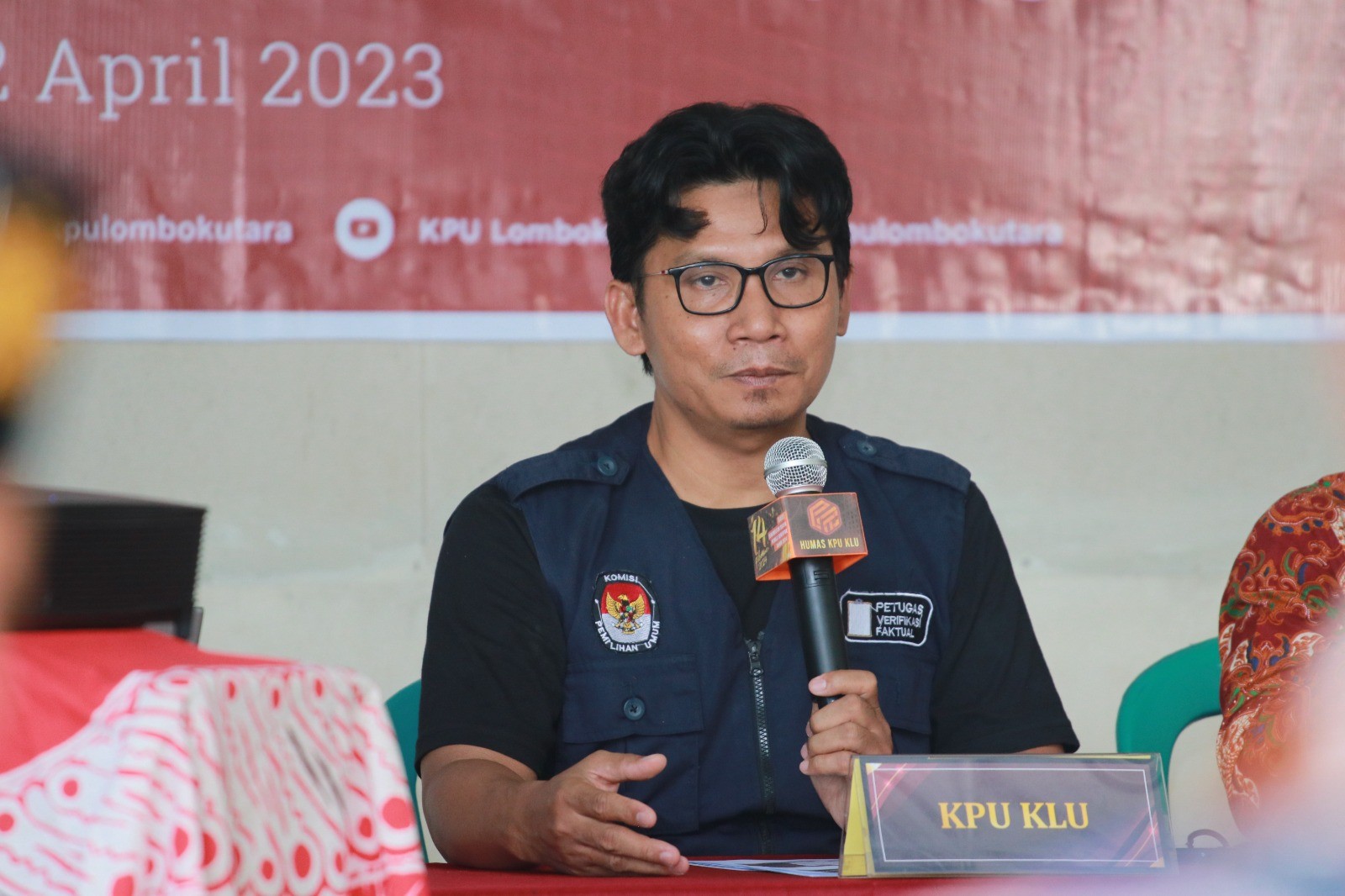 Kegiatan dilanjut dengan penyampaian Peraturan Komisi Pemilihan Umum Nomor 6 Tahun 2023 tentang Daerah Pemilihan dan Alokasi Kursi Anggota Dewan Perwakilan Rakyat, Dewan Perwakilan Rakyat Daerah Provinsi, dan Dewan Perwakilan Rakyat Daerah Kabupaten/Kota Dalam Pemilihan Umum Tahun 2024 oleh Ketua Divisi Teknis Penyelengaraan Kardi.M.Pd. (TEKMAS KPU-KLU)