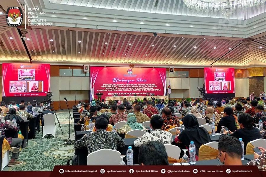 GANGGA (kab-lombokutara.kpu.go.id) - Ketua Divisi Teknis Penyelenggara, Divisi Perencanaan, Data dan Informasi, Kasubbag Teknis Penyelenggara dan Parhumas serta Operator SIPOL KPU Kabupaten Lombok Utara menghadiri kegiatan Bimbingan Teknis terkait Pendaftaran, Verifikasi dan Penetapan Partai Politik Peserta Pemilu Anggota DPR dan DPRD dalam Pemilihan Umum Tahun 2024 serta pengenalan fungsi Sistem Informasi Partai Politik (SIPOL) yang diselenggarakan oleh KPU RI di Jakarta, Sabtu (23/07).
