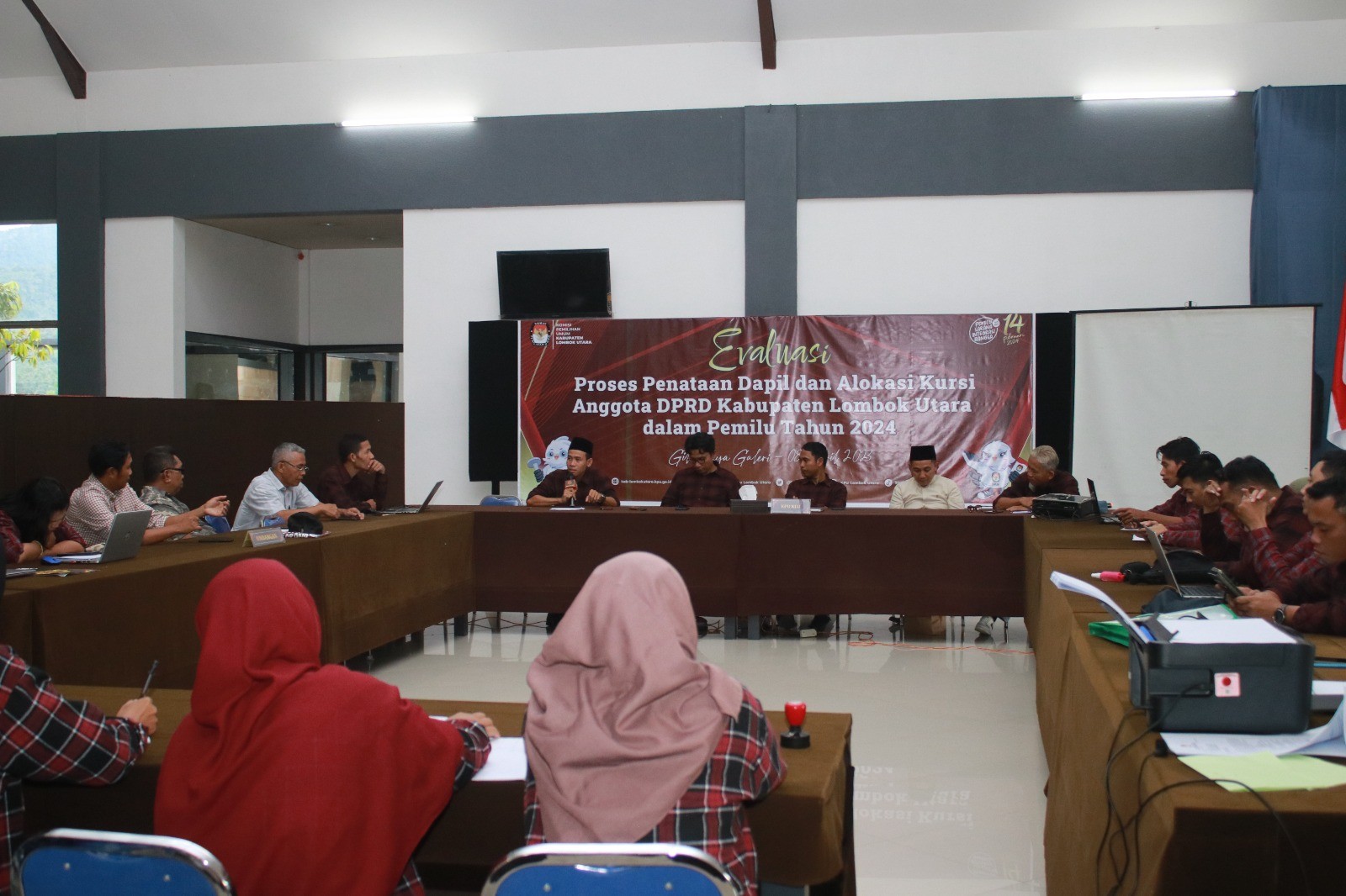 KPU KLU, LAKSANAKAN EVALUASI PROSES PENATAAN DAPIL DAN ALOKASI KURSI ANGGOTA DPRD KABUPATEN LOMBOK UTARA PEMILU 2024.