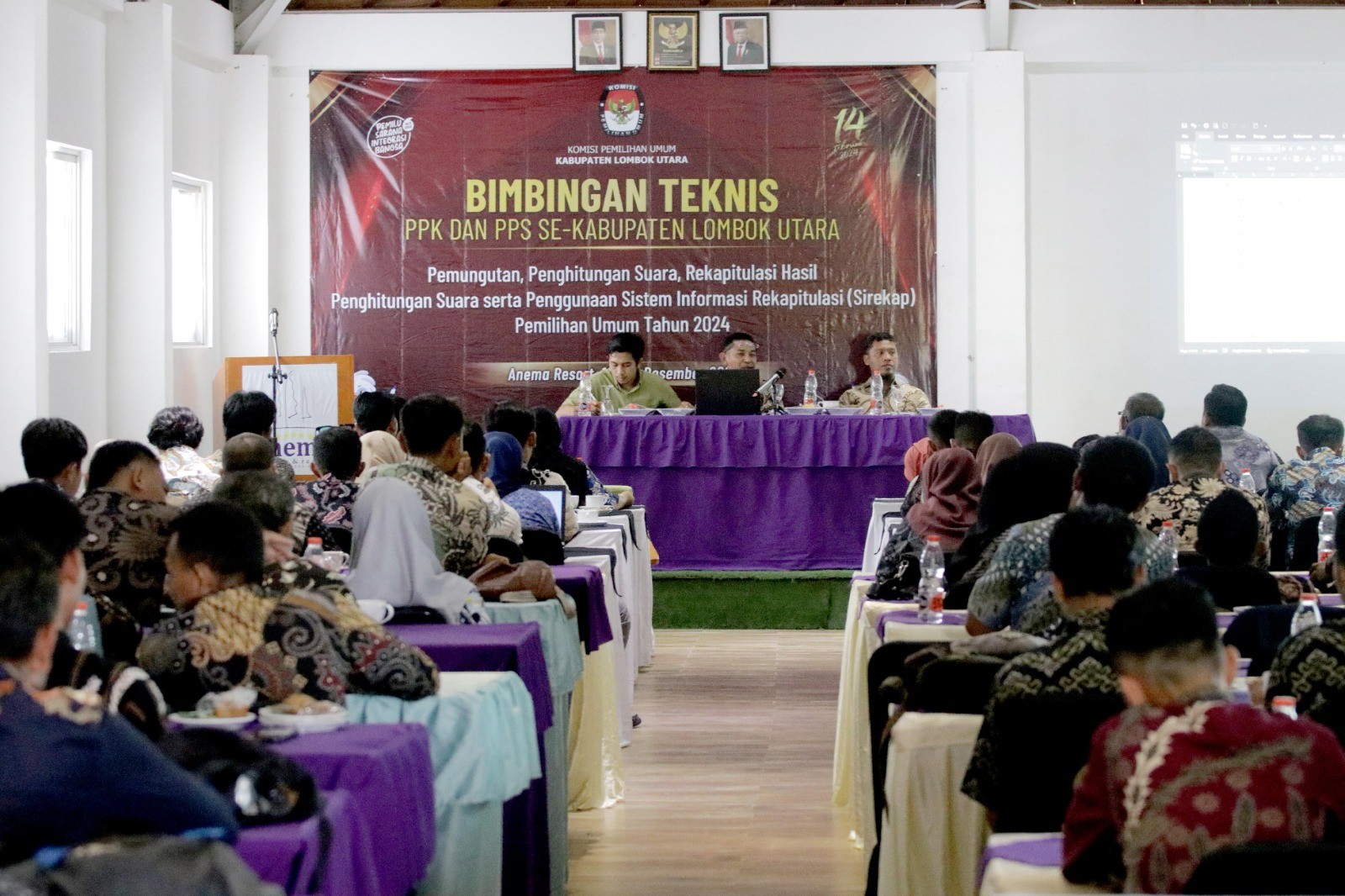 Gangga (kab-lombokutara.kpu.go.id)-Komisi Pemilihan Umum (KPU) Kabupaten Lombok Utara (KLU) membuka kegiatan Bimbingan Teknis Panitia Pemungutan Suara (PPS) yang dilakukan oleh Panitia Pemilihan Kecamatan (PPK) Gelombang II dari tanggal 18 s.d 19 desember 2023 bertempat di Anema Resort Tanjung.