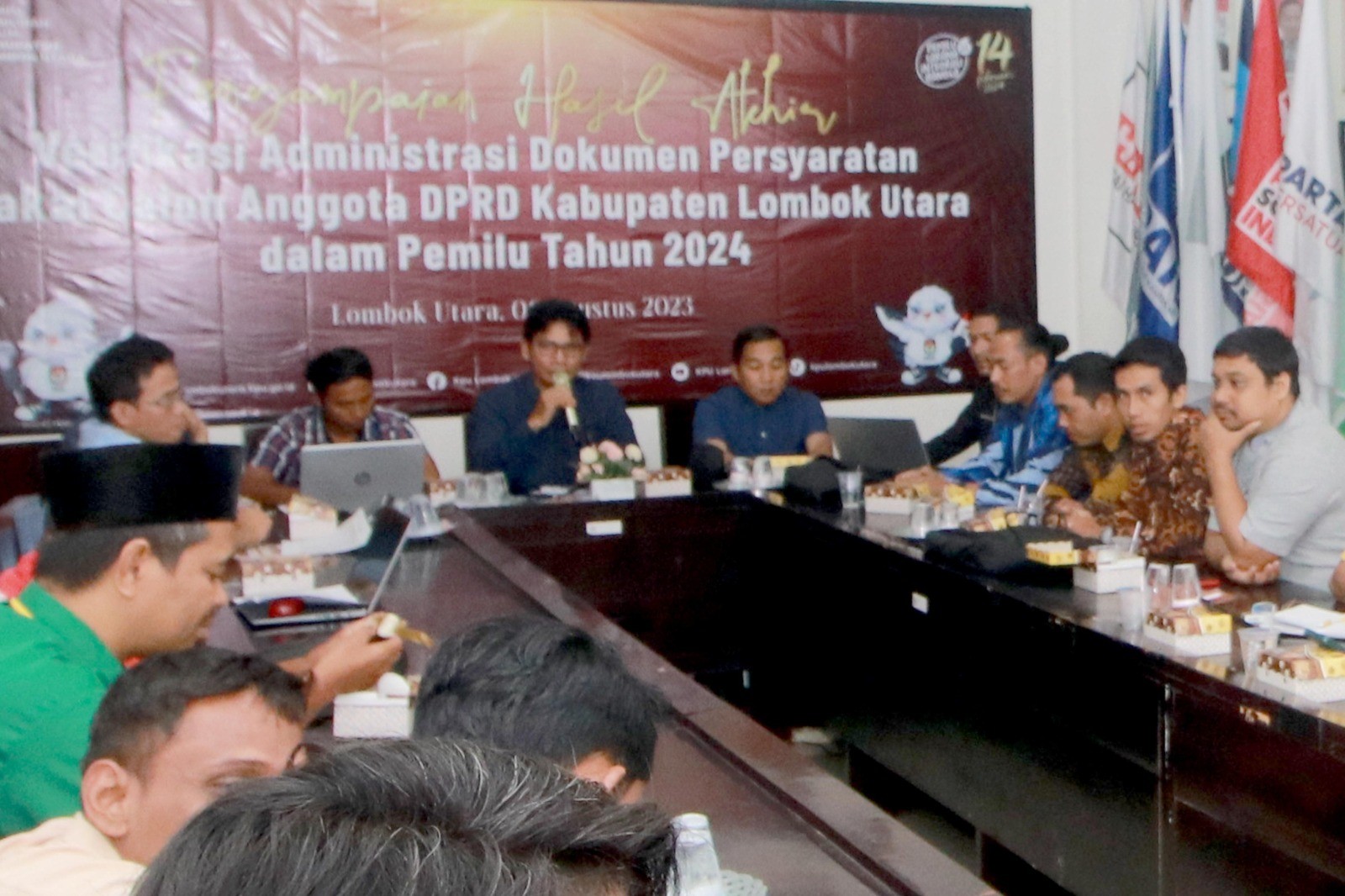 KPU LOMBOK UTARA SAMPAIKAN BA HASIL AKHIR VERIFIKASI ADMINISTRASI DOKUMEN PERSYARATAN BAKAL CALON ANGGOTA DPRD KABUPATEN LOMBOK UTARA DALAM PEMILU 2024