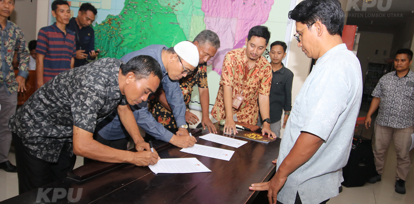 Sebanyak 5 Sekretaris dan 10 Staf Sekretariat PPK dari 5 Kecamatan hadir menandatangani Fakta Integritas dihadapan Ketua dan Anggota KPU Kabupaten Lombok Utara dan Sekda Lombok Utara.