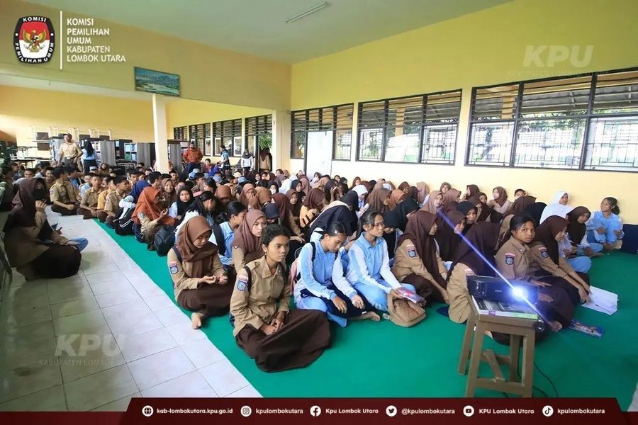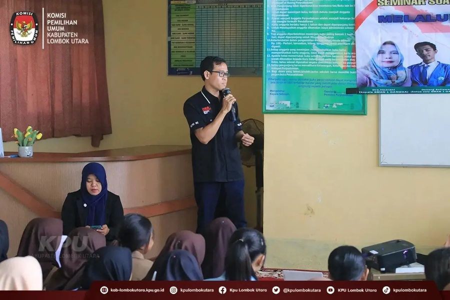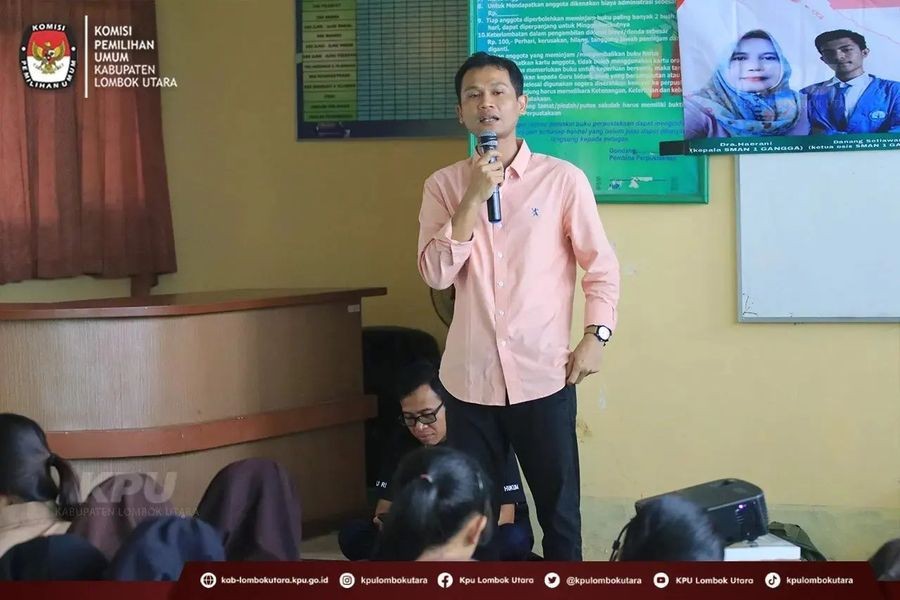 GANGGA (kab-lombokutara.kpu.go.id) - Anggota Komisi Pemilihan Umum (KPU) Kabupaten Lombok Utara (KLU), Nizamudin dan Rasdi Pion hadir melakukan pendampingan pada kegiatan Persiapan Pemilihan Osis SMAN 1 Gangaa dengan tema Suara Demokrasi. Sabtu (13/08).
