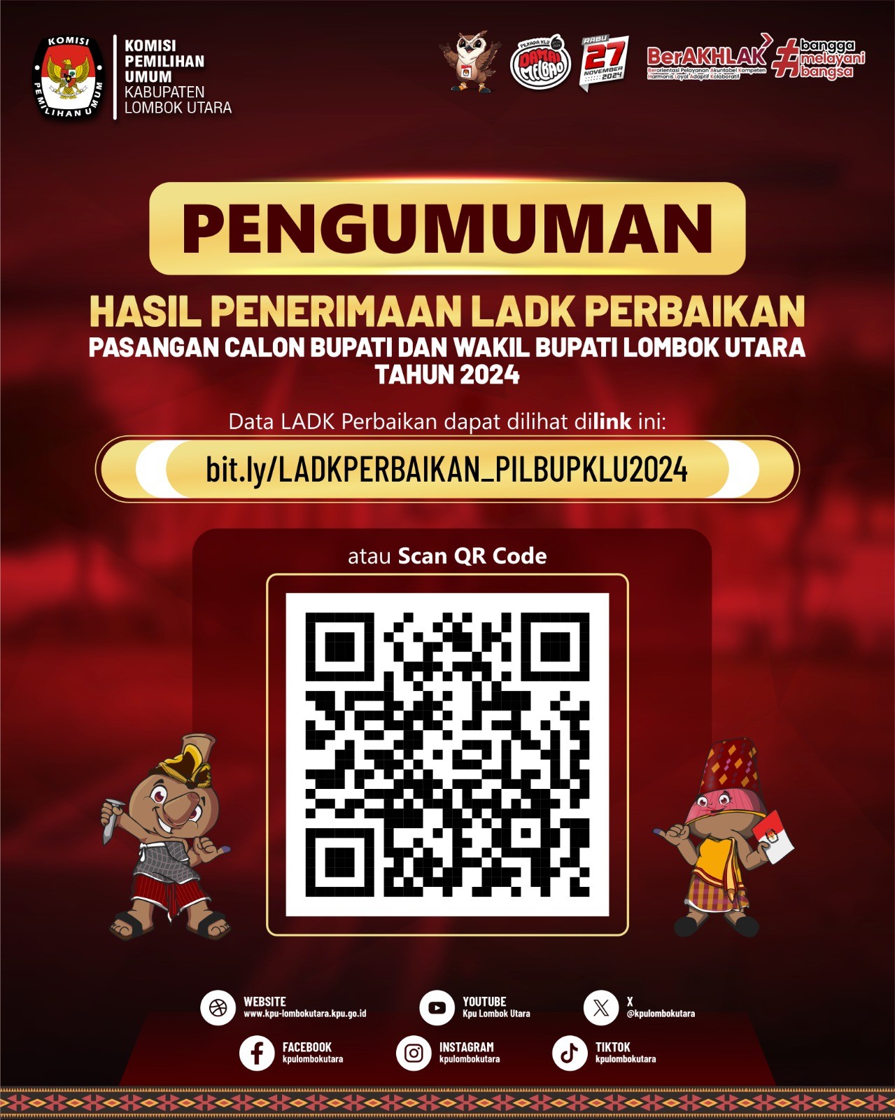 PENGUMUMAN HASIL PENERIMAAN LADK PERBAIKAN CALON BUPATI DAN WAKIL BUPATI LOMBOK UTARA TAHUN 2024