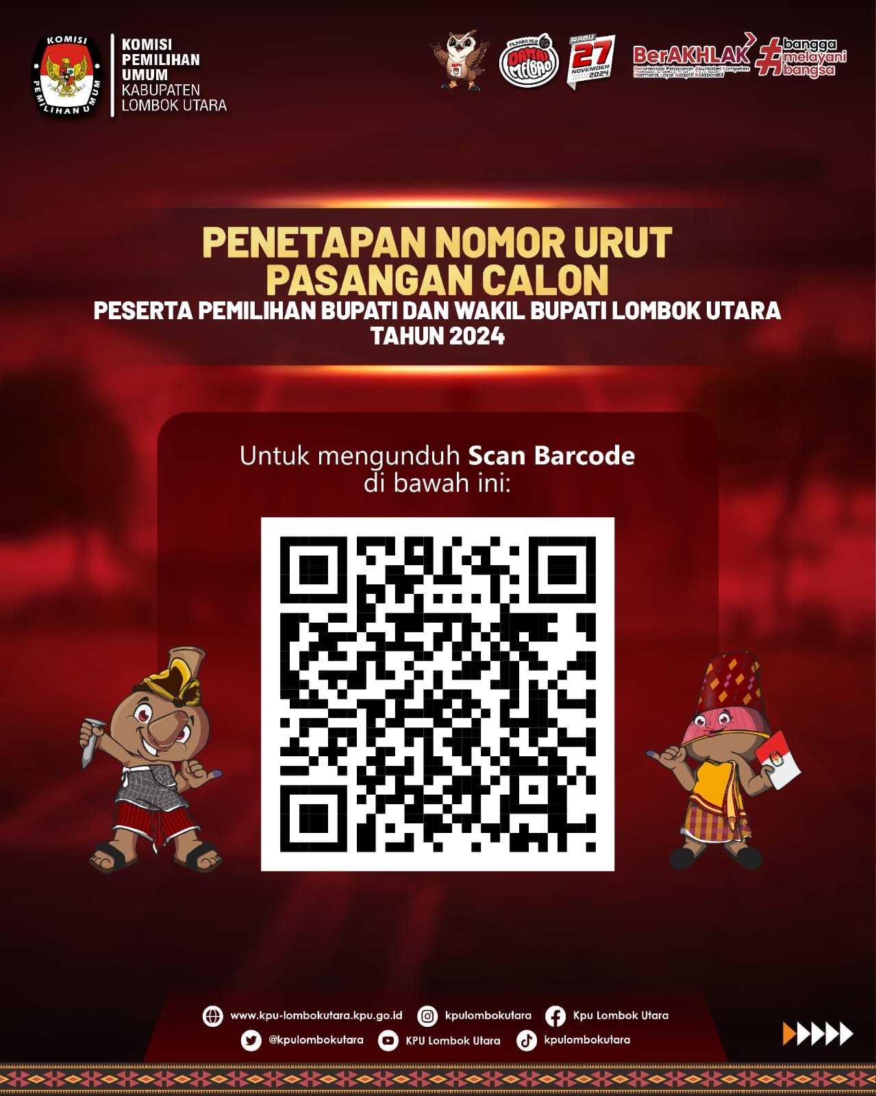 #TemanPemilih, Pengumuman Penetapan Nomor Urut Pasangan Calon Peserta Pemilihan Bupati dan Wakil Bupati Lombok Utara Tahun2024.