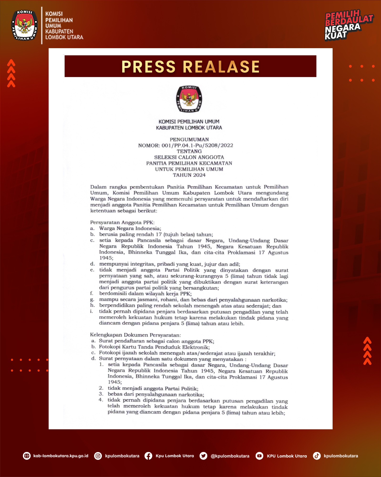 PENGUMUMAN RANCANGAN DAPIL DAN ALOKASI KURSI PEMILU 2024