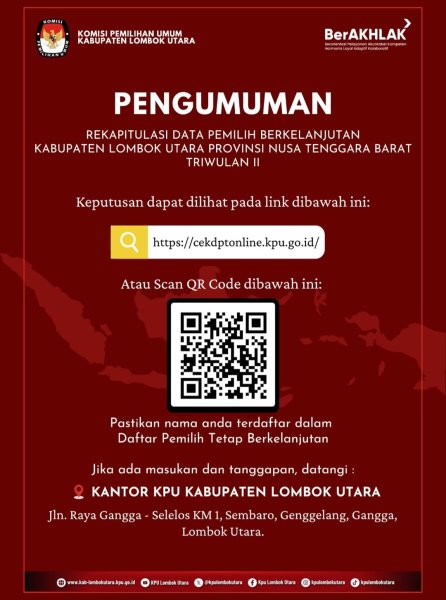 Pengumuman Rekapitulasi Daftar Pemilih Berkelanjutan Triwulan II Tahun 2025 Kabupaten Lombok Utara.