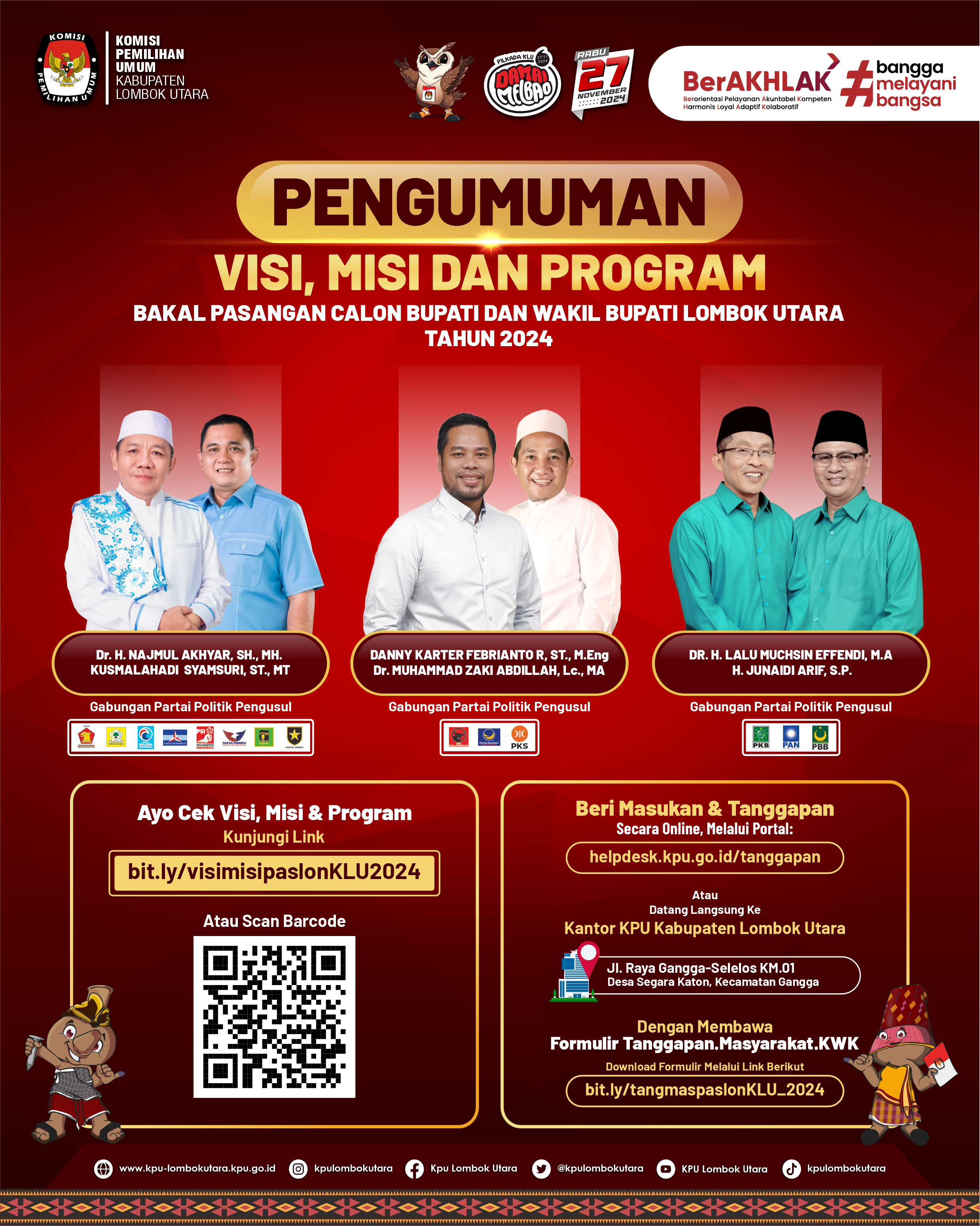 PENGUMUMAN VISI, MISI DAN PROGRAM BAKAL PASANGAN CALON BUPATI DAN WAKIL BUPATI LOMBOK UTARA TAHUN 2024