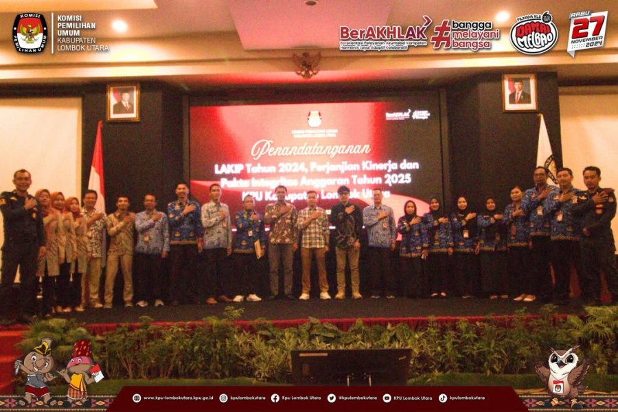 Pada kesempatan yang sama, dilaksanakan serah terima LAKIP tahun 2024, Perjanjian Kerja dan Pakta Integritas oleh Sekretaris KPU Lombok Utara Lalu Adyar Rosishi Aswandi Kepada Ketua KPU Lombok Utara sekaligus ditandatangani oleh seluruh jajaran pejabat struktural KPU Lombok Utara.