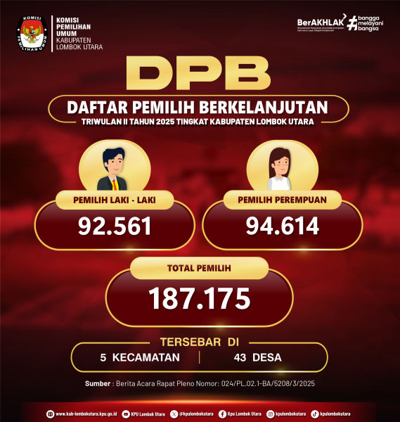 Berikut Merupakan Infografis Rekapitulasi Daftar Pemilih Berkelanjutan Triwulan II Tahun 2025 Tingkat Kabupaten Lombok Utara.