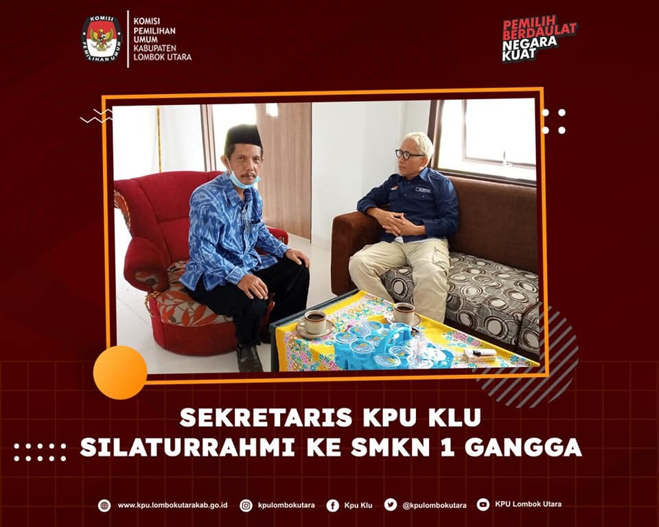 Hari ini Selasa (17/05), Sekretaris KPU Kabupaten Lombok Utara Nurdin, S.Sos berkunjung ke SMK Negeri I Gangga dan diterima secara langsung oleh kepala sekolah Andi Munif, S.Pd.