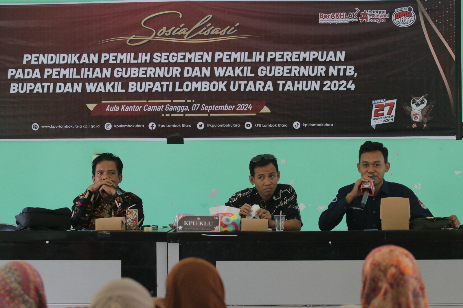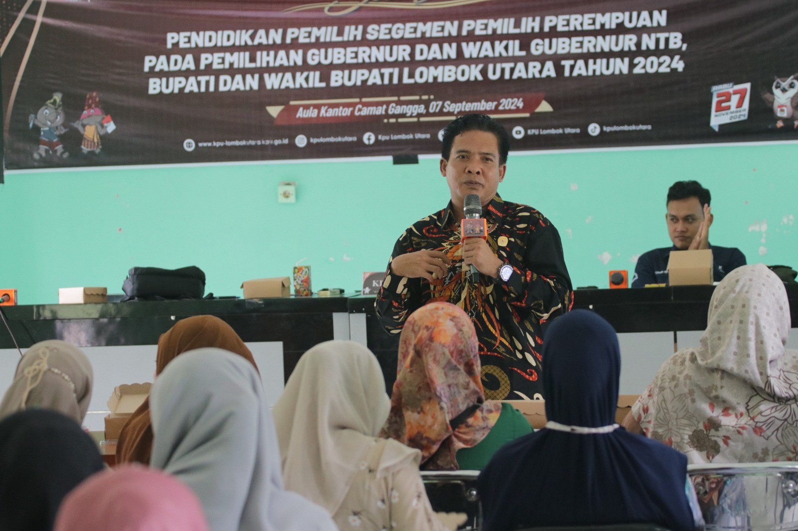 GANGGA (kpu-lombokutarakab.go.id)– Komisi Pemilihan Umum Kabupaten Lombok Utara Melaksanakan Sosialisasi Pendidikan Pemilih Segemen Pemilih Perempuan Kecamatan Gangga bertempat di Aula Kantor Camat Gangga, Sabtu (07/9/24).