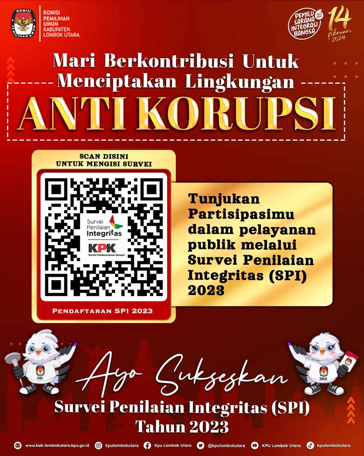 Diharapkan kepada seluruh pegawai dan masyarakat yang berhubungan dengan pihak KPU Kabupaten Lombok Utara agar segera merespon ketika terpilih menjadi responden Survei Penilaian Integritas (SPI)
