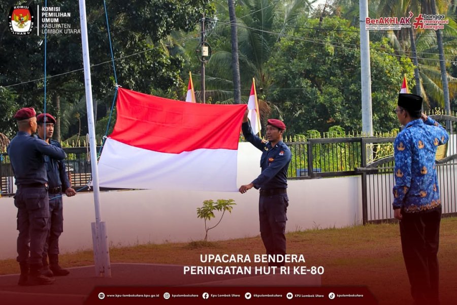 Gangga (kpu-lombokutarakab.go.id)-Komisi Pemilihan Umum Kabupaten Lombok Utara menggelar Upacara Pengibaran Bendera Merah Putih, Peringatan Hari Ulang Tahun Ke 80 Kemerdekaan Republik Indonesia diikuti oleh Seluruh Jajaran KPU Lombok Utara Bertempat Di Halaman Kantor KPU Lombok Utara, Minggu 17/08/25.