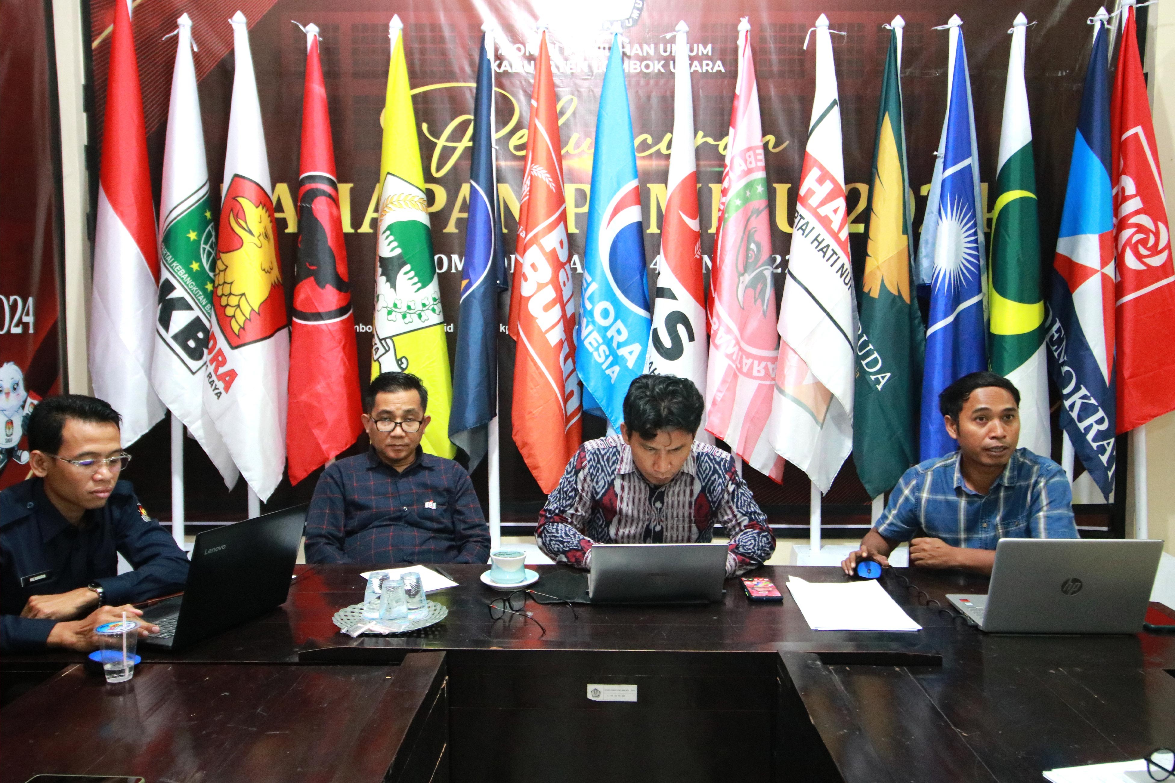 Hadir dalam kegiatan ini Ketua dan Anggota KPU KLU, Sekretaris, Kasubbag Teknis dan Parhumas serta Verifikator Silon KPU Lombok Utara.